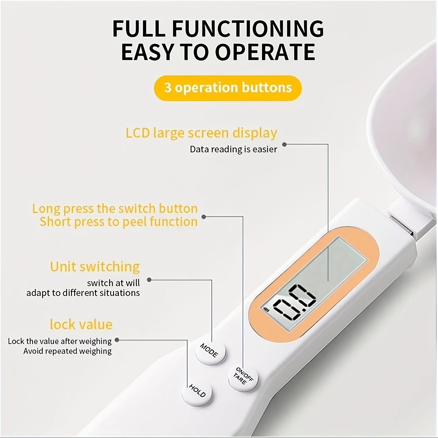 Digital measuring spoon is detachable and easy to clean. Easy to use and simple to operate. High accuracy of 0.1g, minimum weighing reading of 0.5g