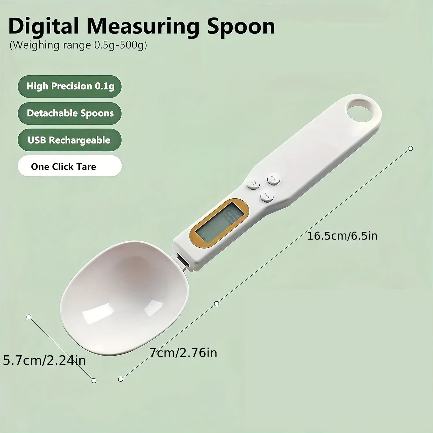 Digital Measuring Spoon | High Precision 0.1g Accuracy | Rechargeable Kitchen Scale for Baking & Cooking | Ergonomic Handle with USB Charging | Multi-Use for Coffee, Tea, Spices | Easy-to-Read Display | Durable Plastic, Bakin