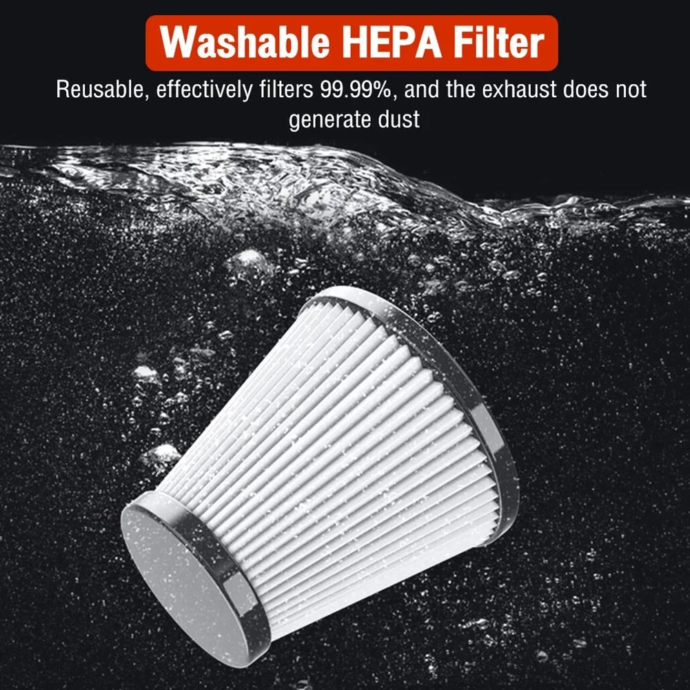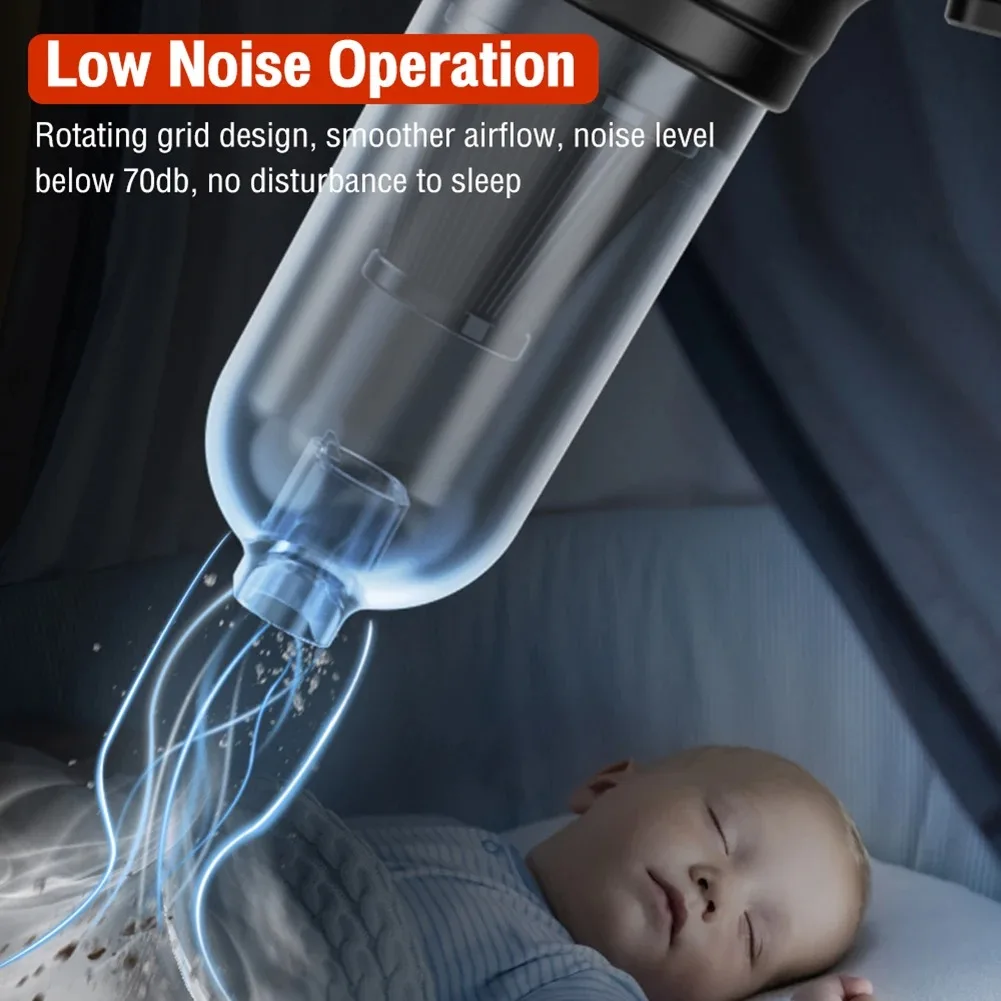 【Easy to Clean】: The car vacuum cleaner is equipped with a 100ml large capacity dust cup and washable filter, convenient and easy to clean. Working noise is less than 70db.
