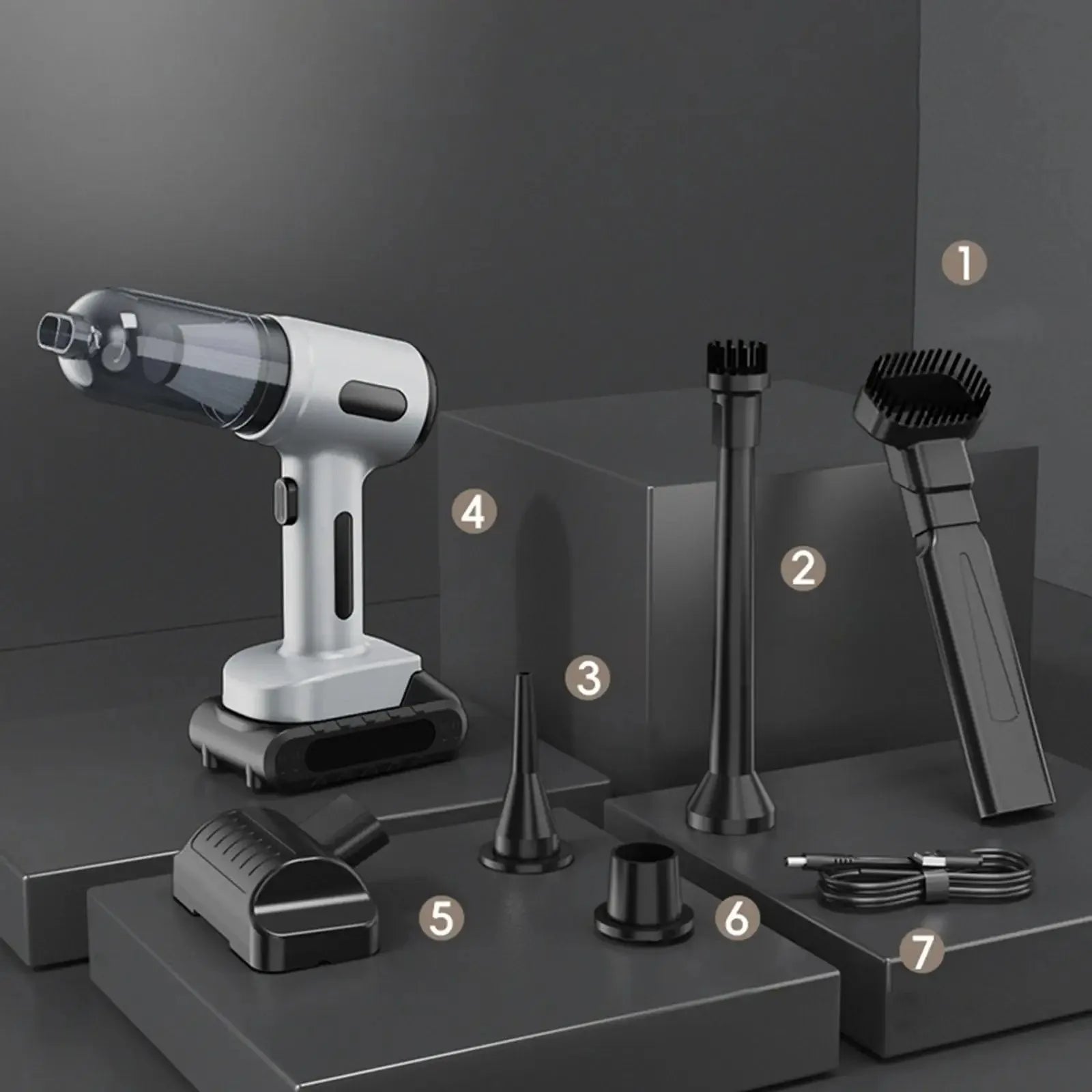 【Wide Application】: The vacuum cleaner is equipped with multiple different attachments to better meet your cleaning needs. Not only can loosen hair and dust which is stuck in objects, but also can clean crevices and corners. Suitable for daily cleaning, including home, office, vehicle, pet, couch, carpet, etc.