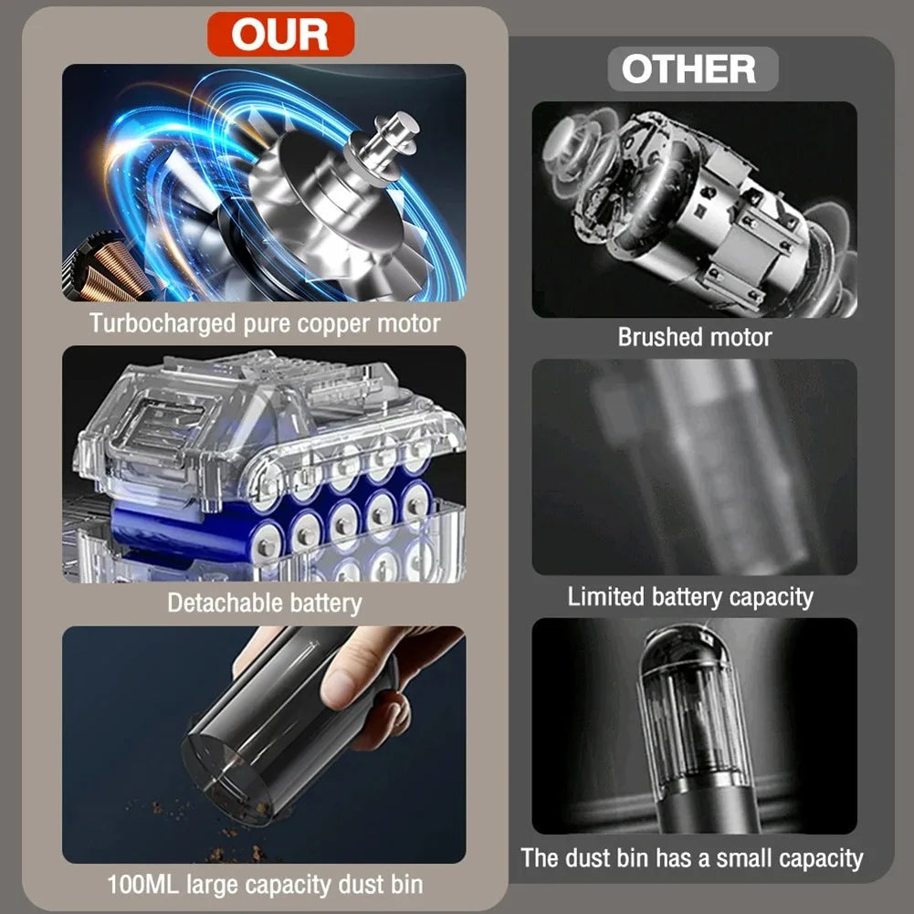 Mini Wireless Car Vacuum Cleaner 12V 4300Pa Ultra-Strong Suction Handheld Vacuum Portable Mini Air Blower for Home and Car